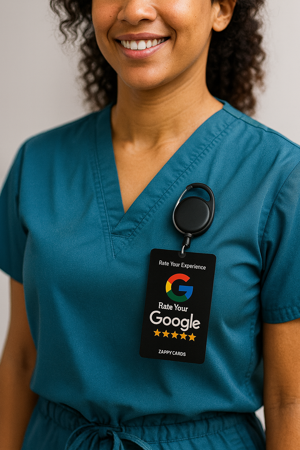 Custom-designed stands with NFC + QR—just tap, scan, and watch reviews roll in.