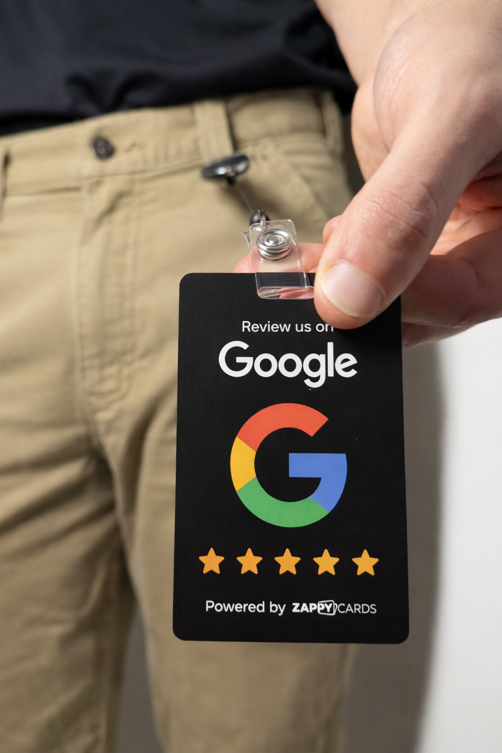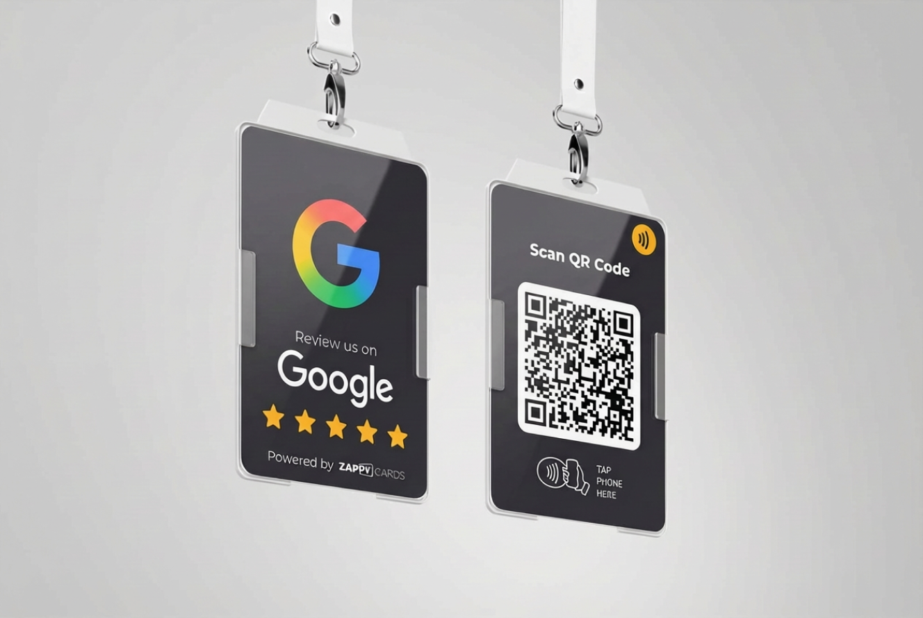 Custom-designed stands with NFC + QR—just tap, scan, and watch reviews roll in.